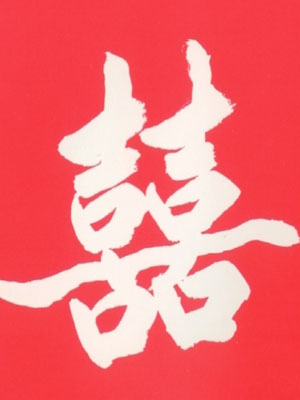 מיוצגת עם אחד השמחות הגדולות בתרבות הסינית- חתונה. והיא קשורה גם לפריון. בדרך כלל נראית גם בכניסה לחתונות על נייר אדום,צבע מזל. הסמנייה המראה פה גדול וצוחק מתלווה גם לסימניה " מי יתן ותתגדלו יחד מבוגרים בהרמוניה" או "מי יתן ותבורכו ב100 בנים ואלף נכדים" הסמניה קשורה גם לברווזי המנדרין,לוטוס,אל השלווה וההרמוניה והפוריות.. מקור הסימנייה בשושלת SONG (950). האגדה מספרת על בחור צעיר ומוכשר בשם WANG AN SHI שהפך ברבות הימים לראש ממשלה. בזמן שעשה את דרכו לעיר הבירה כדי לעבור את בחינות הקבלה למשרה אצל הקיסר הוא פגש המון מתאסף סביב המשפחה העשירה בשם MA. כשקרב ראה שבעל הבית מציע את ידה של בתו לגבר שיוכל לחבר את חלקה השני של הסמנייה שהייתה תלויה מחוץ לביתו. מר וונג שראה בזה אתגר משעשע לא יכול היה להתמהמה כיוון שבחינות חלו למחרת היום. הבוחן שהתרשם מפקחותו של וונג ביקש לפגוש אותו אישית כדי לבחון אותו במהרה הוא הציג בפניו להשלים מחצית מסמנייה שזיהה כזו שהיתה מחוץ לדלתו של העשיר. מר וואנג הרשים את הבוחן עד מאוד כשאמר מייד את התשובה. בדרך חזרה ניגש וואנג לבית העשיר עם התשובה. אדון מה נתן לוואנג את ידה של ביתו והחתונה נערכה למחרת היום. באותו זמן נודע שוונג עבר את הבחינה ועומד לקבל משרה בכירה. שתי השמחות האלו להן זכה בעת ובעונה אחת הביאה לוואנג את ההשראה לכתוב על דף את הקליגרפיה של האושר הכפול על נייר אדום. מאז היא מקושרת עם אושר וחתונה.