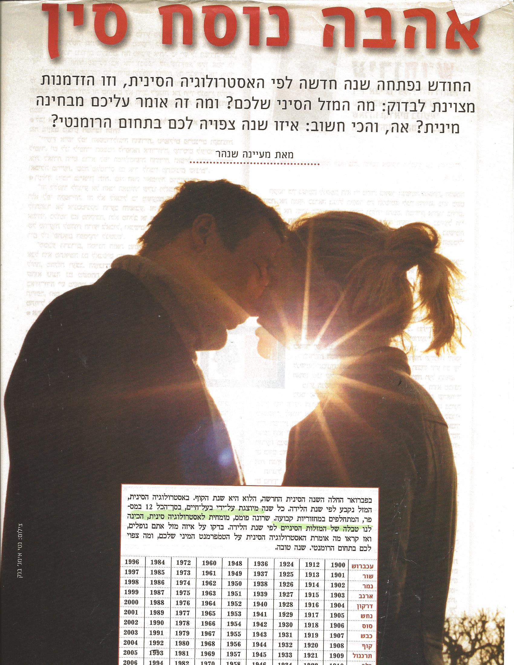 שרונה פומס, מומחית לאסטרולוגיה סינית, הכינה לנו טבלה של המזלות הסינים לפי שנת הלידה. בדקו על איזה שנה אתם נופלים, ואז קראו מה אומרת האסטרולוגיה הסינית על הטמפרמנט המיני שלכם, ומה צפוי לכם בתחום הרומנטי. שנה טובה.