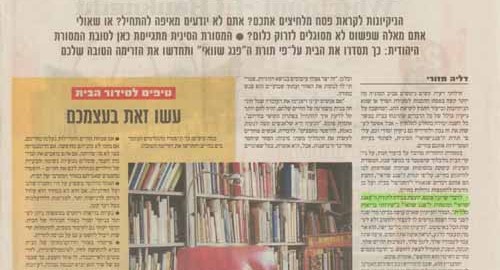 כתבה שהופיעה במוסיף "מגזין" של "מעריב' "ב28.3.04 הניקיונות לקראת פסח מלחיצים אתכם? אתם לא יודעים מאיפה להתחיל? או שאולי אתם מאלה שפשוט לא מסוגלים לזרוק כלום? Continue reading
